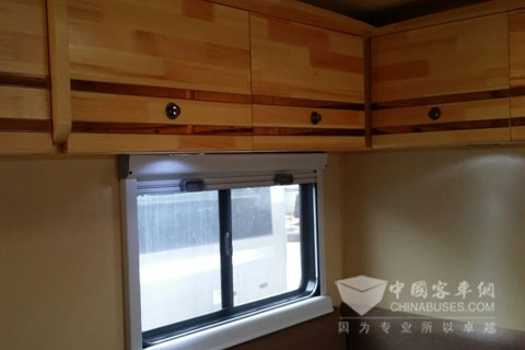內(nèi)飾設(shè)計(jì)上,該房車全部采用高品質(zhì)的實(shí)木木料,并帶有一自主創(chuàng)新設(shè)計(jì)的環(huán)形沙發(fā),可容納更多乘坐人員,據(jù)中通負(fù)責(zé)人介紹,因是環(huán)形設(shè)計(jì),該沙發(fā)容納七八個(gè)人都不顯得擁擠;娛樂(lè)設(shè)備方面,該車帶有兩個(gè)電視機(jī),可充分增加乘客的出行樂(lè)趣;此外,為保證車內(nèi)空間的充分利用,中通LCK5041XLJQ4A型房車采用電動(dòng)踏步設(shè)計(jì),既方便乘客上下車,又能節(jié)省空間,沙發(fā)床更是采用上下升降設(shè)計(jì),四個(gè)人都可以住的非常舒服。