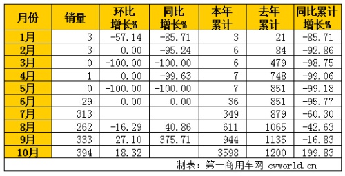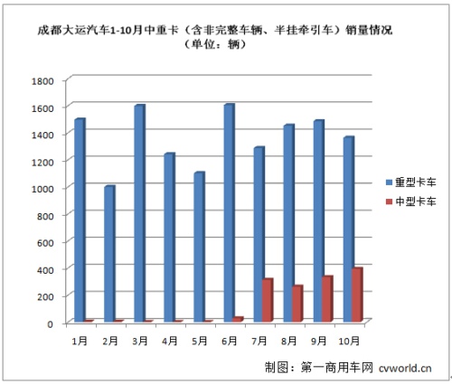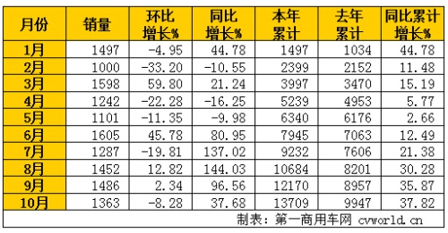 大運(yùn)汽車(chē)1-10月中卡銷(xiāo)量情況(單位:輛)