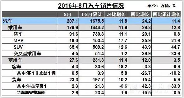 8月,汽車(chē)銷(xiāo)售207.10萬(wàn)輛,環(huán)比增長(zhǎng)11.83%,同比增長(zhǎng)24.22%;生產(chǎn)199.05萬(wàn)輛,環(huán)比增長(zhǎng)1.58%,同比增長(zhǎng)26.60%。1-8月,汽車(chē)產(chǎn)銷(xiāo)1684.59萬(wàn)輛和1675.50萬(wàn)輛,同比增長(zhǎng)10.82%和11.43%,增幅分別比1-7月提升1.83個(gè)百分點(diǎn)和1.59個(gè)百分點(diǎn)。