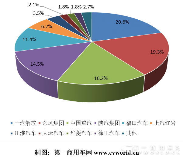 今年5月份,銷量前十的重卡企業(yè)共計(jì)銷售11.09萬輛,占到當(dāng)月重卡總銷量的97.3%,其中九家企業(yè)同比均有不同程度的增長(zhǎng);有5家企業(yè)銷量過萬,一汽解放銷售2.35萬輛,蟬聯(lián)銷量排行榜第一;東風(fēng)銷售2.2萬輛,穩(wěn)居行業(yè)第二,與解放的差距縮小到1500輛左右;重汽、陜汽分別以1.85萬輛、1.65萬輛的銷量,保持了第三和第四。